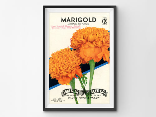 Marigold Vintage Seed Packet POSTER! (up to 24" x 36") - Flowers - Decoration - Farmhouse - Farm - Garden - Pop Art - Kitchen - Antique