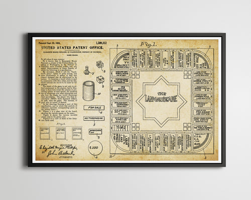 1924 Landlord's Game Patent POSTER! (up to 24" x 36") - Board Game - Gaming History
