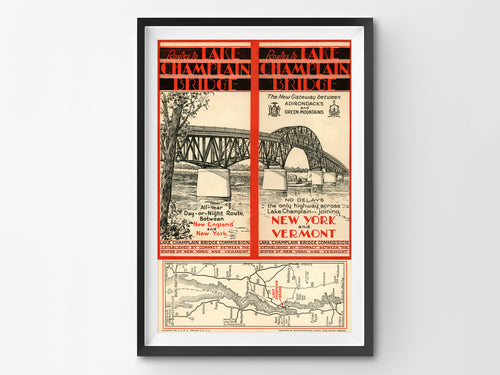 1929 Lake Champlain Bridge Brochure POSTER! (up to 24" x 36") - Vintage - Adirondacks - New York - New England