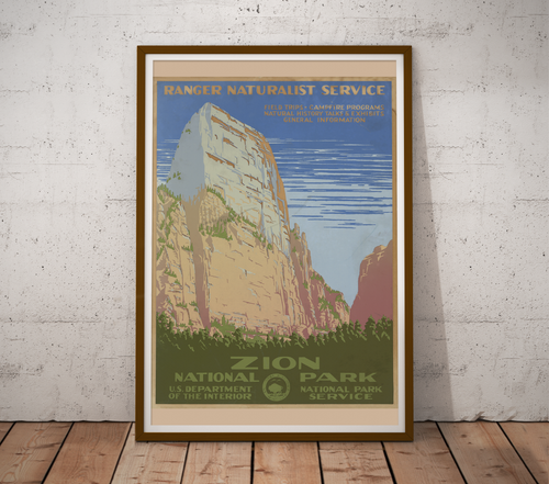 1930's Zion National Park Poster (up to 24" x 36") - Department of Interior - Vintage Style - Utah