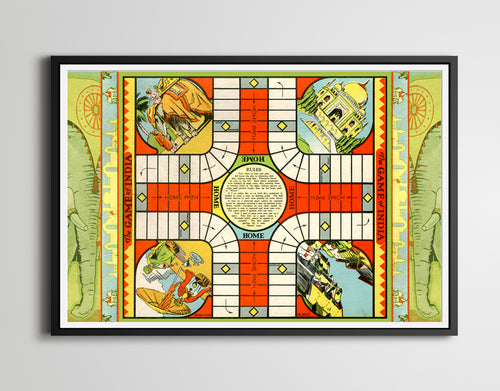 1930 Game of India (Parcheesi) Game Board POSTER! - 24" x 36" or Smaller - Sorry! - Elephants - Taj Mahal