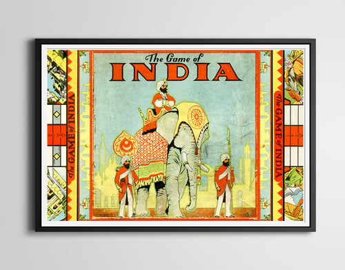 1930 Game of India (Parcheesi) Board Game Box POSTER! (multiple sizes) - Elephants