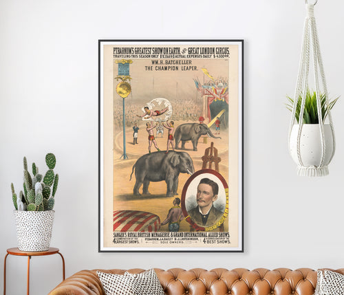 1880 Vintage Circus Poster – Barnum Greatest Show on Earth, Elephant, Acrobat, Antique Circus Wall Art Print, Retro Carnival Decor