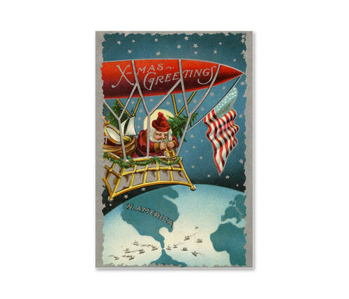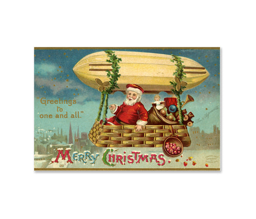 1909 Santa in a Blimp Poster: Vintage Christmas Art, Toys, Holiday Decorations, Antique