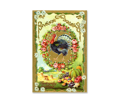 Thanksgiving Poster Vintage Style - Early 1900's Postcard - Turkey Pumpkin Apple Pilgrim