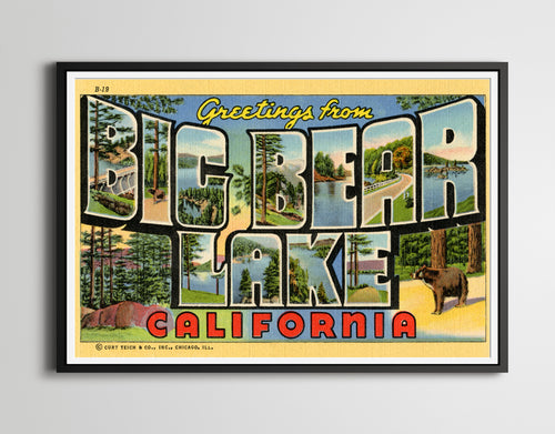 Vintage Big Bear Lake Postcard POSTER! (Full-size 24" x 36" or smaller) - Large Letter - California - Hiking - Camping - Wildlife - Outdoors