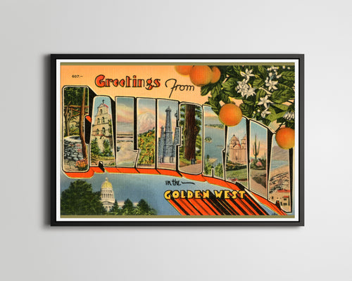 Vintage CALIFORNIA "In the Golden West" Postcard POSTER! (up to 24" x 36") - Vintage - Antique - Large Letter - Big Letter - West - Travel