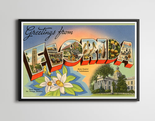 Vintage FLORIDA "Large Letter" Postcard POSTER! (24" x 36" or smaller) - Vintage - Antique - The Land of Sunshine - Travel - Vacation