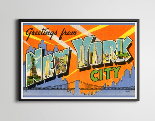 New York City Vintage Postcard POSTER! (24" x 36" or Smaller) - Large Letter, Decoration, Antique, City, Statue of Liberty, Travel, NYC