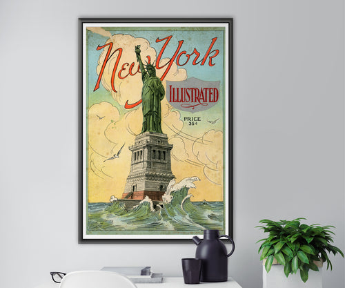 1925 New York Illustrated POSTER! (up to full-size 24" x 36") - NYC - City - Vintage - Statue of Liberty - Landmarks - Hudson - Seagulls