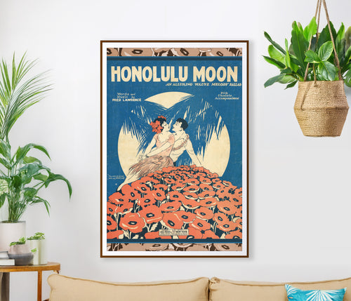 Honolulu Moon Vintage Hawaiian Poster – Retro Tropical Wall Art Decor