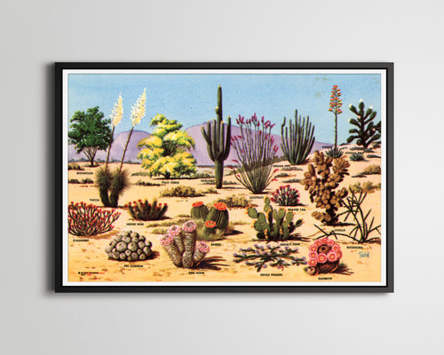 1953 Petley Desert Cacti POSTER! (24" x 36" or Smaller) - Vintage Postcard - Southwest - Joshua Tree - Yucca - Mojave - Cactus - Decor - Art