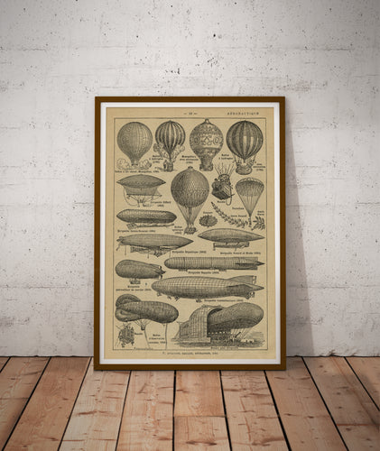 Vintage Dirigibles Art Poster - 1931 French Dictionary Balloons Chart Image