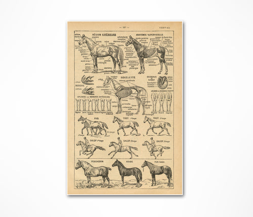 Vintage French Horse Cheval Poster - Up to 24x36 - Antique Dictionary Art Print