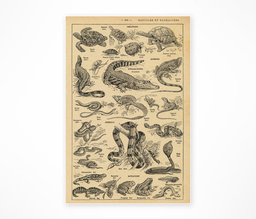 Vintage Reptile Illustrations POSTER! (up to 24" x 36") - c. 1906 - French Dictionary - Steampunk - Victorian - Antique - Hand Drawn Art