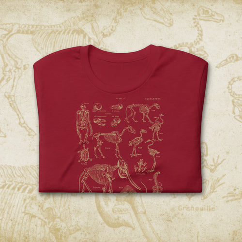 Vintage Animal Skeleton Diagram T-Shirt – French Science & Nature Inspired Shirt