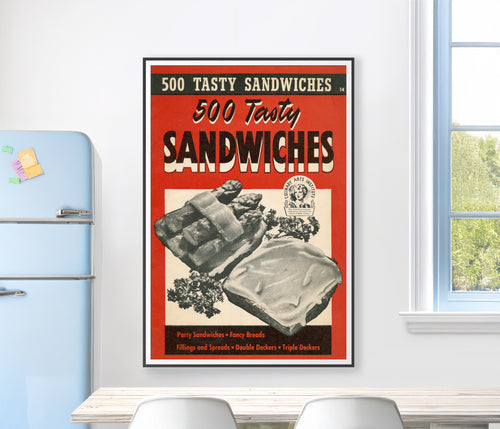 Vintage Sandwich Poster | Retro Kitchen Wall Art | 500 Tasty Sandwiches Print | Mid-Century Cookbook Cover | Diner Decor | Foodie Gift