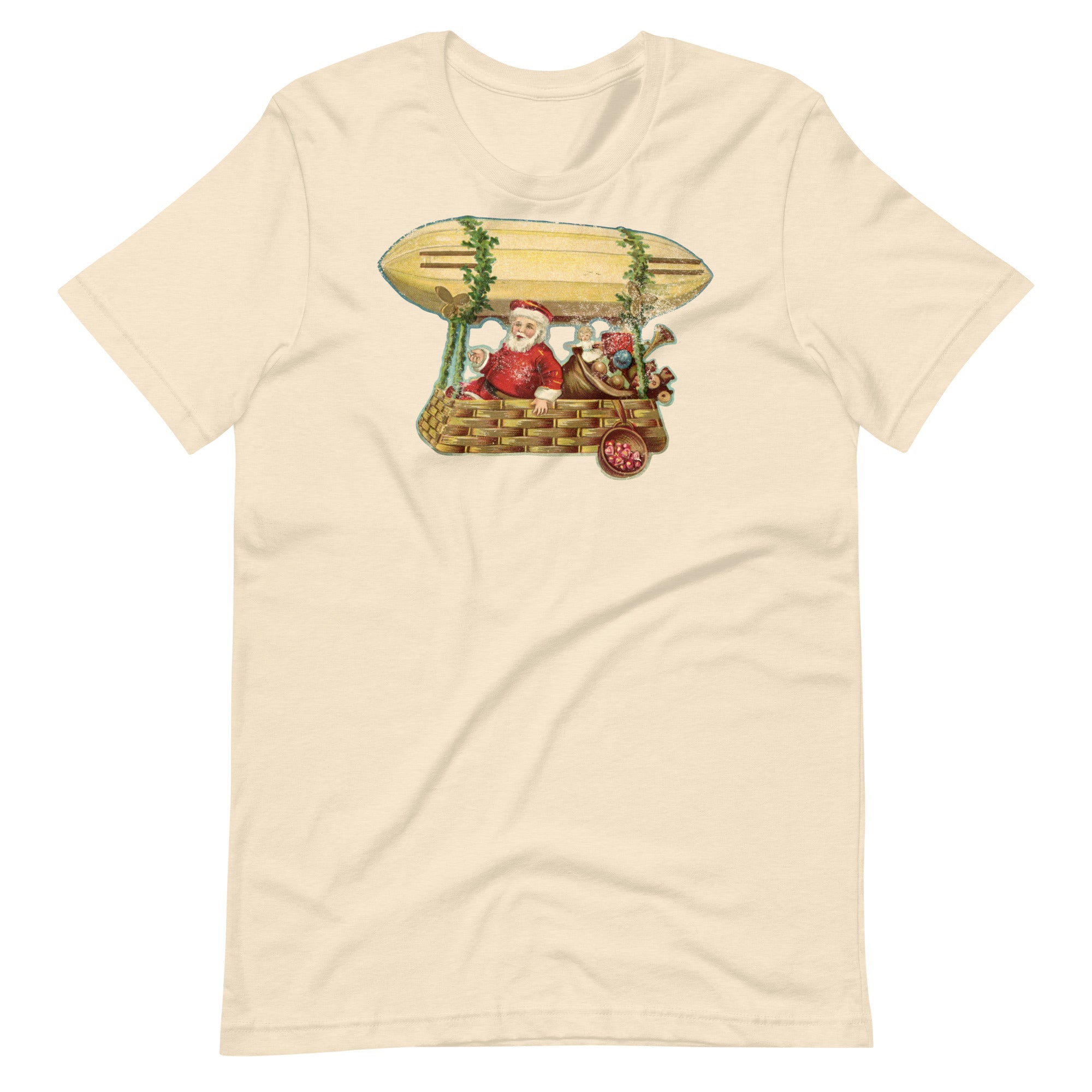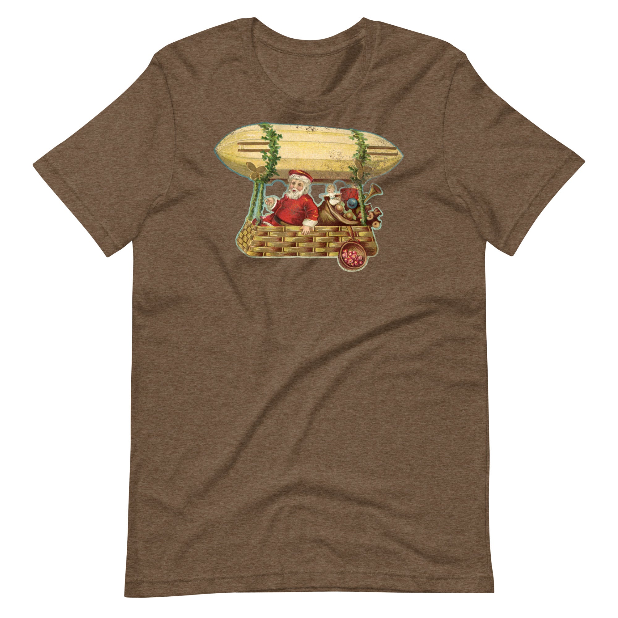 Whether you're dressing up for a cozy holiday market, a festive family gathering, a whimsical Christmas photoshoot, or simply want to add a bit of storybook sparkle to your December wardrobe—this charming Santa airship tee is ready for takeoff. Makes a delightful gift for vintage art lovers, steampunk dreamers, Christmas collectors, and anyone who believes in a little old-fashioned holiday magic.