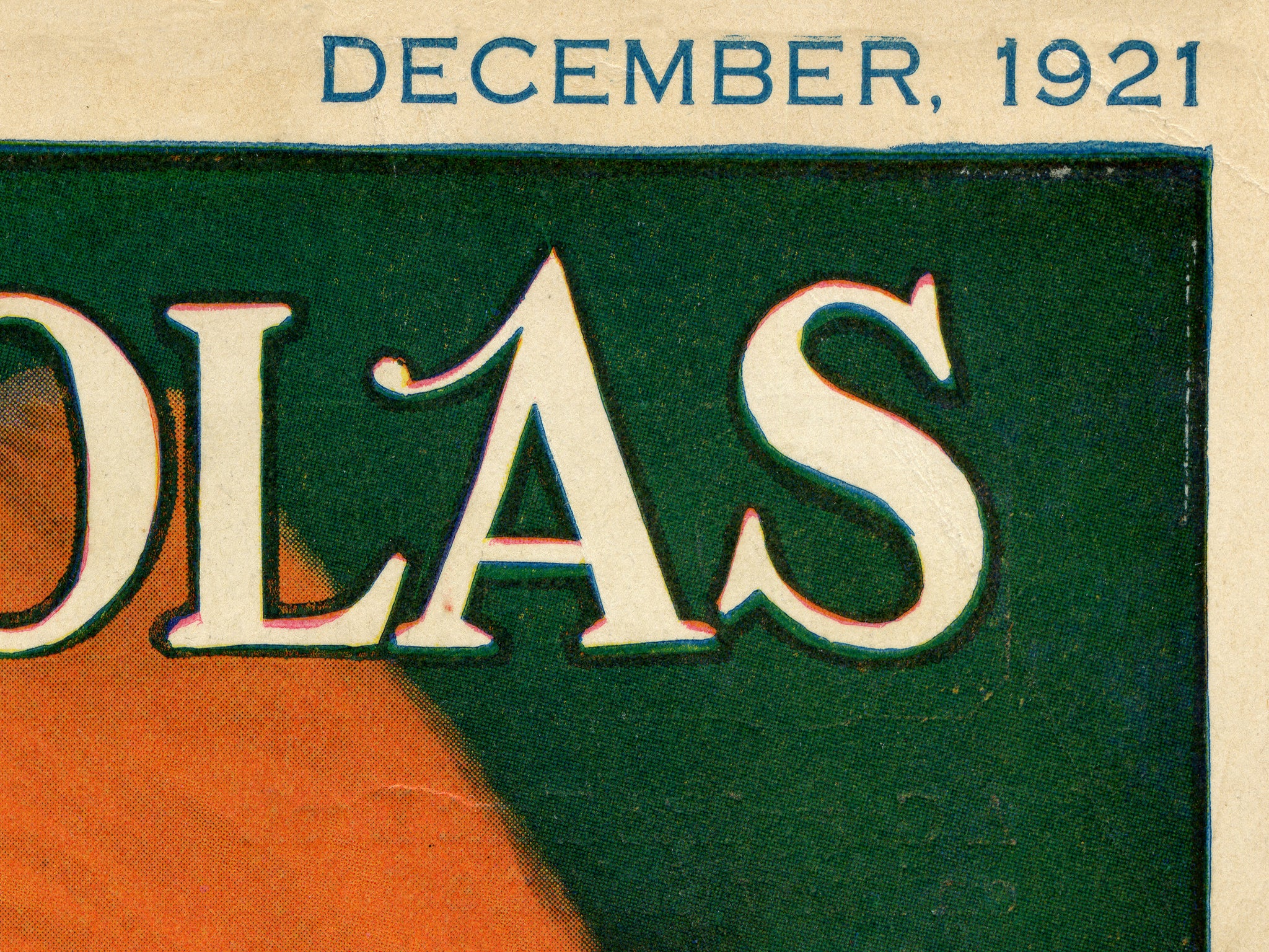 This image comes from a December 1921 edition of St. Nicholas Magazine. St. Nicholas was a popular monthly American children's magazine, founded by Scribner's in 1873 and named after the Christian saint. The first editor was Mary Mapes Dodge, who continued her association with the magazine until her death in 1905. Dodge published work by the country's leading writers, including Louisa May Alcott, Frances Hodgson Burnett, Mark Twain, Laura E. Richards and Joel Chandler Harris. Many famous writers were first published in St. Nicholas League, a department that offered awards and cash prizes to the best work submitted by its juvenile readers. Edna St. Vincent Millay, F. Scott Fitzgerald, E. B. White, and Stephen Vincent Benét were all St. Nicholas League winners. St. Nicholas ceased publication in 1940. A revival was attempted in 1943, but only a few issues were published before St. Nicholas folded once more.